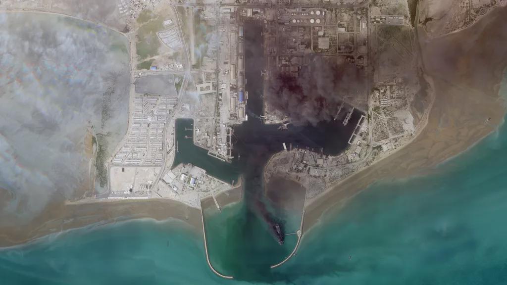 当下美媒《战区》注意到,Bandar Abbas卫星拍摄的卫星图显示,伊朗海军总部阿巴斯港遭遇了严重破坏,阿巴斯港遍布浓烟。伊朗海军吨位最大舰艇,满载排水量高达12万吨的马卡兰号前进基地舰,也被命中,并燃起了滚滚黑烟。似乎还有多艘护卫舰受损,但具体情况无从得知。